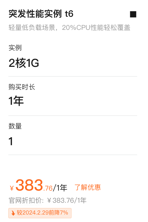 相比上一代突发性能实例规格族t5,性价比进一步提升
